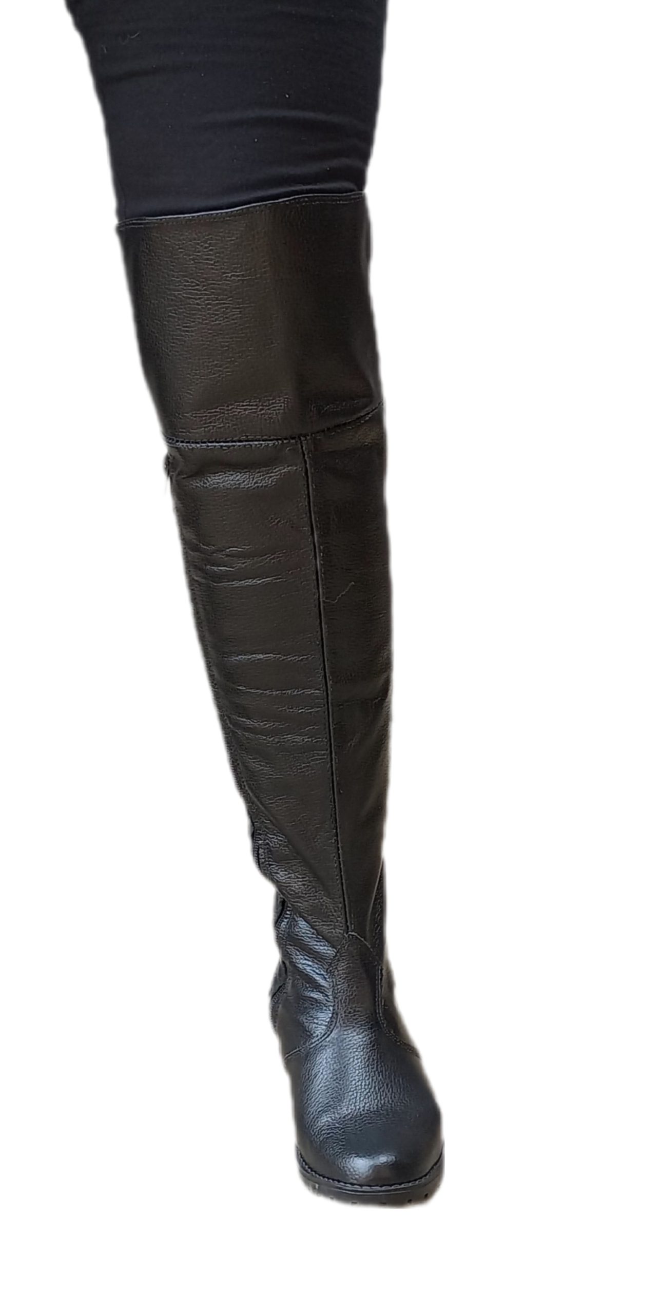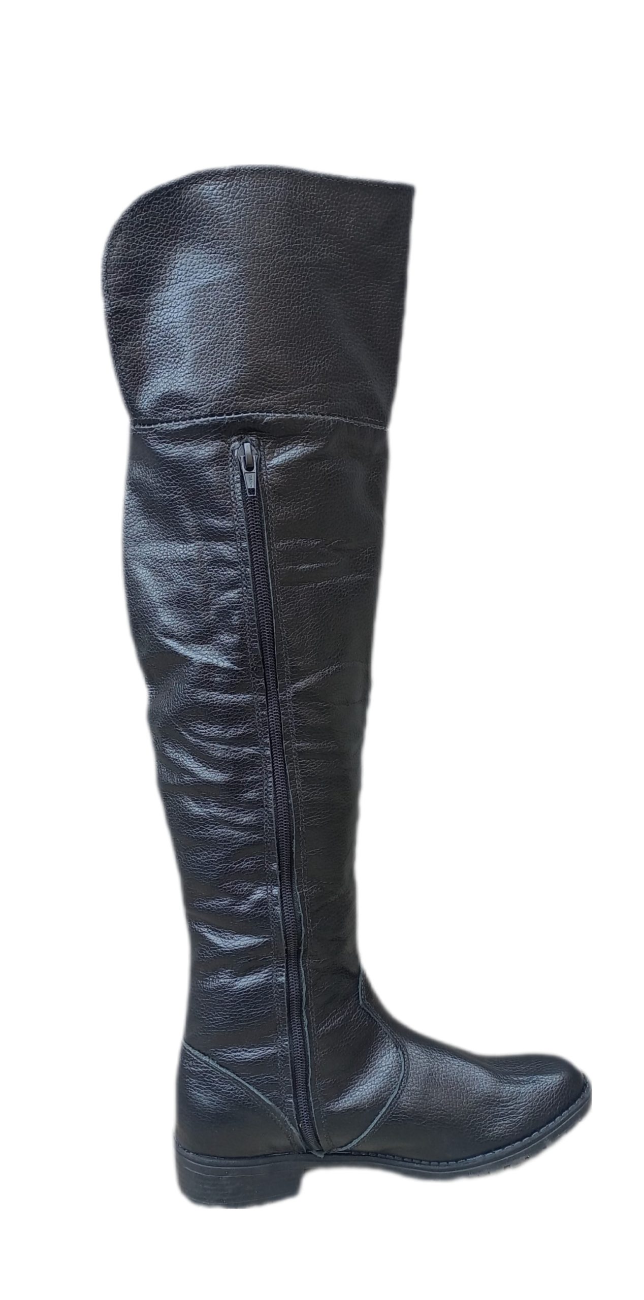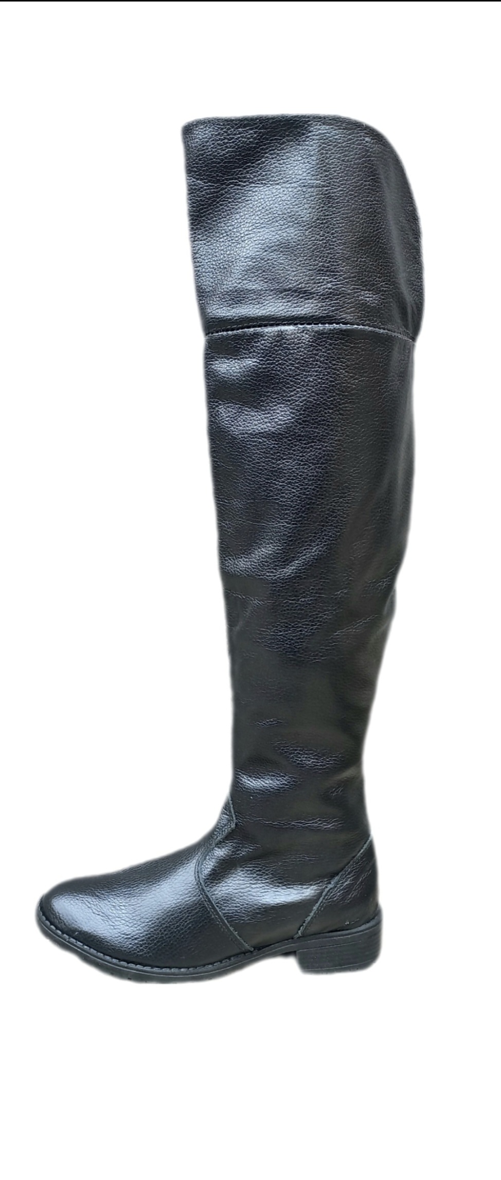 - Bota over the knee fabricação própria, confeccionada em couro legítimo de origem bovina, toda forrada internamente com tecido estofado, possui zíper lateral, cadarcço de ajuste atrás, solado emPU ( poliuretano) macio, leve e não escorrega, palmilhas fixas forradas. Bota com excelente acabamento, fabricada por artesãos altamente qualificados.